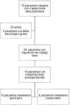 ResultadosUn total de 18 pacientes (36%) presentaron complicaciones agudas tras la reposición ósea, de los cuales 10 (55,5%) requirieron una nueva cirugía para su tratamiento. El 95% de las reposiciones se realizaron en los primeros 90 días tras la craniectomía, con una tendencia a presentar más complicaciones respecto al periodo posterior (37,8% vs. 20%, p>0,05). La complicación más frecuente fue el higroma subdural, de aparición más tardía que la infección, que fue la segunda complicación más frecuente. Tanto la necesidad de drenaje ventricular o traqueostomía, como el tiempo medio de ventilación mecánica, ingreso en UCI o espera hasta la reposición ósea, fueron mayores en los pacientes que presentaron complicaciones post-reposición. La presencia previa de infecciones fuera del sitio quirúrgico fue el único factor de riesgo asociado al desarrollo de complicaciones post-reposición (p=0,031).